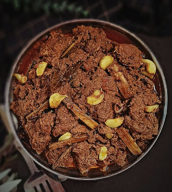 গরুর মাংস শিলপাটায় ভালোভাবে থেঁতলে বা ছেঁচে নিতে হবে। চপিং বোর্ড বা কাউন্টার টপে নিয়ে মিট পাউন্ডার দিয়েও ছেঁচে নেওয়া যায়। এতে রোয়া ভেঙে গিয়ে মাংস নরম হবে। রান্না হবে চটজলদি।