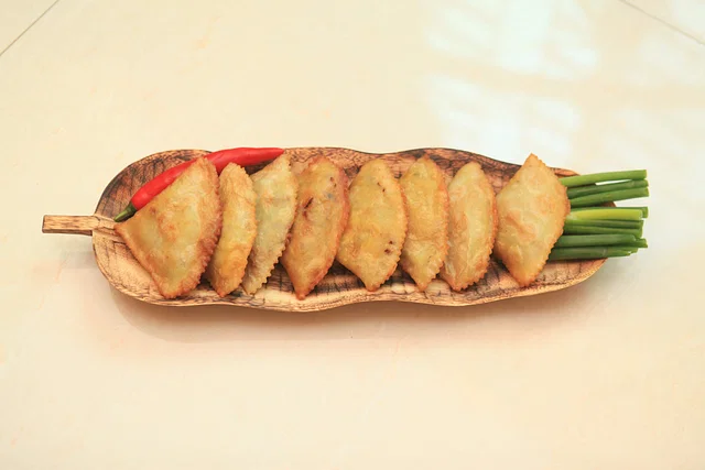 প্রণালি: পানি ফুটিয়ে তাতে লবণ, চালের গুঁড়া ও ময়দা দিয়ে অল্প আঁচে ঢেকে রাখুন। সেদ্ধ হলে নেড়েচেড়ে কাই বানান। নামিয়ে হাত দিয়ে মেখে নিন। কাই দিয়ে কয়েকটি রুটি বেলে মাঝখানে কেটে দুই ভাগ করুন। এক ধারে একটু পুর দিয়ে দুই ধার আটকে দিন। এভাবে সবগুলো পিঠা বানিয়ে নিন। তেল গরম করে ভেজে নিন সবগুলো।